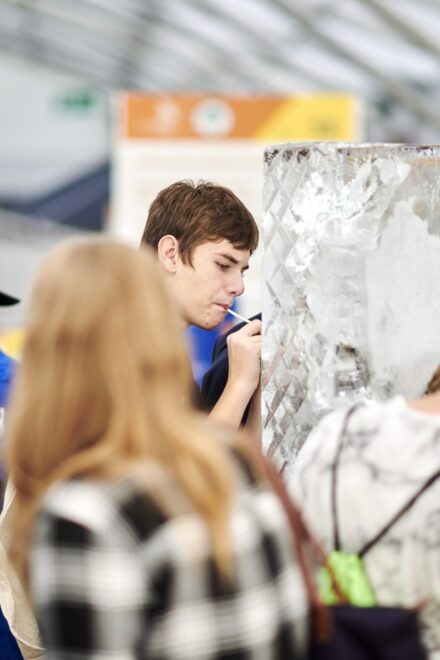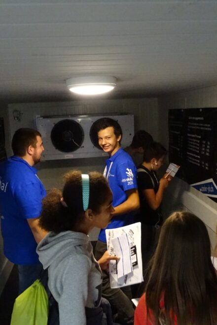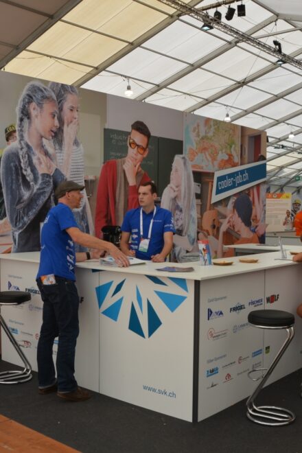 Au stand SVK les visiteurs ont non seulement pu regarder par-dessus l’épaule des participants et participantes à la compétition, mais ils ont aussi pu expérimenter personnellement l’effet d’une machine frigorifique dans une chambre froide praticable. Grâce aux températures parfois encore estivales de la semaine dernière, cette possibilité de se rafraichir a été abondamment utilisée. Tous ceux qui n’avaient pas encore pu suffisamment se rafraîchir dans la chambre froide ont participé au concours et/ou ont posté sous « cool-clever.ch » sur Facebook ou Instagram et ont été récompensés par une délicieuse glace.