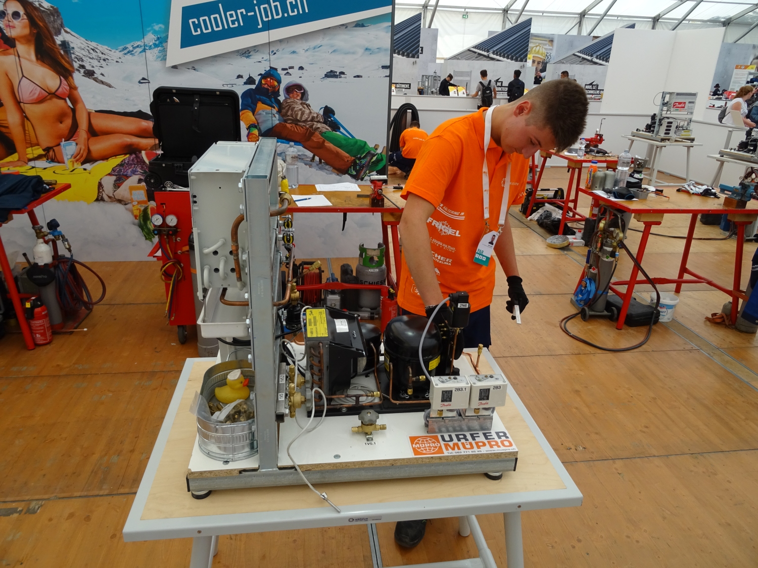 La manifestation spectaculaire SwissSkills 2018 a fermé ses portes hier. Au cours de ces derniers jours, les nouveaux champions suisses ont été désignés pour 75 métiers, 60 métiers supplémentaires ont été présentés sous forme de démonstrations professionnelle. Ainsi, 135 métiers au total ont pu être vécu en direct et au format 1:1. Bien plus de 100’000 personnes ont visité les SwissSkills, près de 900 jeunes professionnels ont lutté de mercredi à samedi pour le titre de champion suisse, parmi eux aussi 16 monteurs/monteuses frigoristes et 4 projeteurs frigoristes. Le dimanche était entièrement sous le signe des « Best of SwissSkills ». Vu que la compétition était alors terminée, les visiteurs ont pu se rapprocher encore davantage des professionnels et de leurs métiers.